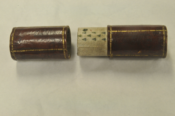 Materials: brass, leather, glass, pasteboard