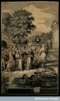 Image 18.9 x 11.4 cm. On the table in the foreground are a gyroscope, an air-pump, a compass, a globe, measuring instruments and a scrap of paper showing a geometrical figure