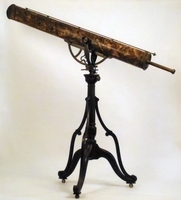 188 x 220 x 96 cm (height, width, depth). This reflecting telescope could be operated in two different optical configurations: the Gregorian and the Newtonian. One uses the eyepiece positioned at one extremity of the tube in the Gregorian setup and the eyepiece placed laterally in the Newtonian setup. These two modes of operation were achieved exchanging the secondary mirror (flat in the Newtonian case and concave in the Gregorian configuration).