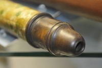Reverse taper. Three-lens ocular system: lenses on eyeside of Draws 1 and 2, further lens in end piece. Eye relief. Writing (printed English text) visible on starside end of Draw 3. Main barrel length without cells and end eye-relief cap. Additional length of wood eyepiece end 80 mm. Tube measurements: 288 mm (Main tube), 76 mm (draw 1), 146 mm (draw 2), 137 mm (draw 3), 150 mm (draw 4), 131 mm (draw 5), 137 mm (draw 6).