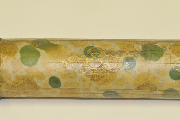 Materials: lignum vitae, parchment, pasteboard, wood, glass, gold tooling