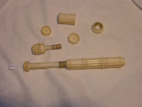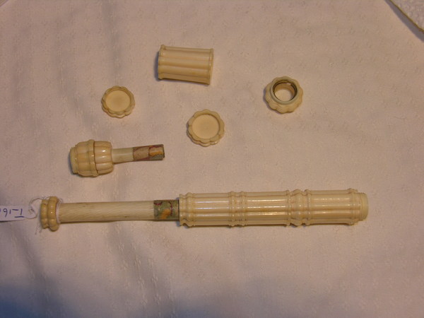 "Two-draw telescope made of curved African ivory fluted lengthwise.