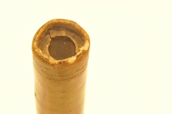 Objective notes: Objective diaphragm made of paper, held in place by paper ring on inside with writing (see borescope film). Starside convex; if eyeside plano, focal length would be twice the measured amount; if eyeside instead equally biconvex, then computed focal length would match measured focal length. When tubes are separated, with significant gap between them, image of distant object can be formed. Separation of lenses when focused at infinity: 570mm. Given measured objective focal length of 653 mm (using a comparative magnification method), this implies a negative lens eyepiece with a focal length of 83 mm.