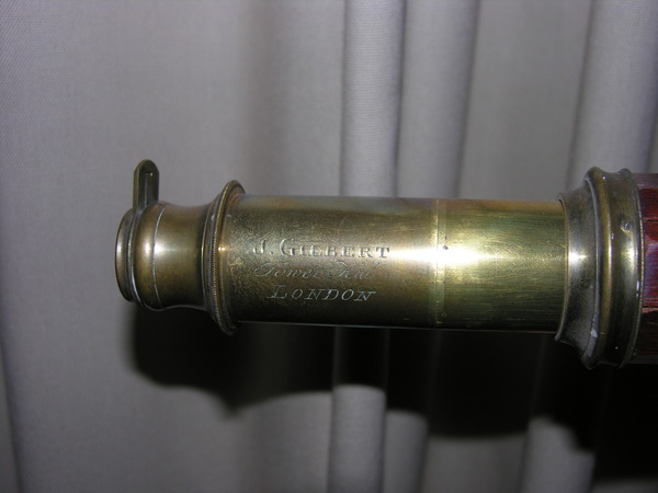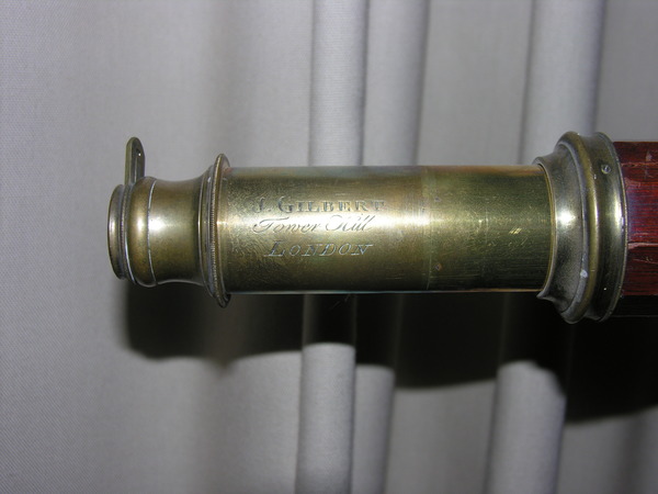 Five lens eyepiece. Crown forward (front lens of achromat) has same surface curvature as Dollond crown lens but the flint lens has a different curvature. Maker might thus have purchased lens from Dollond. After Fraunhofer, eyepiece lenses are calculated surfaces. Before then, makers such as Dollond used trial and error.