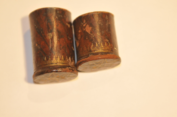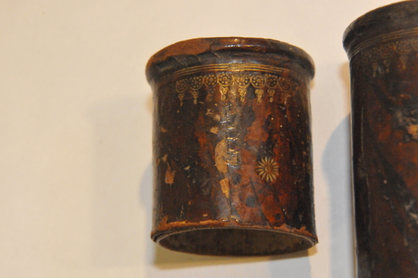 Materials: paper, pasteboard, glass, wood, leather, gold tooling