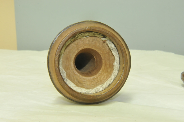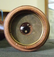 Eyepiece has large matte surface, with deep central well, typical of early Galilean telescopes. Brass ocular diaphragm thickness ranges from .15mm to .21 mm, again suggesting it is original. Diaphragm has outer diameter of 47.6, stopped down to 18.0 mm.