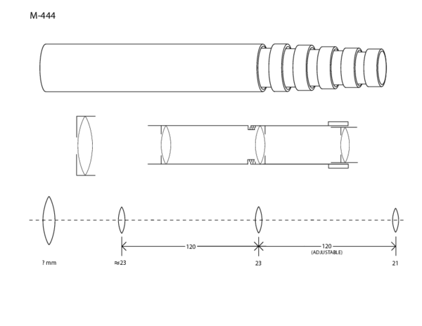 fD focal length (mm): free aperture (mm): full aperture (mm): s spacing (mm): CA curvature (diopters): CB curvature (diopters): M magnification: FOV field of view (degrees): Thickness: