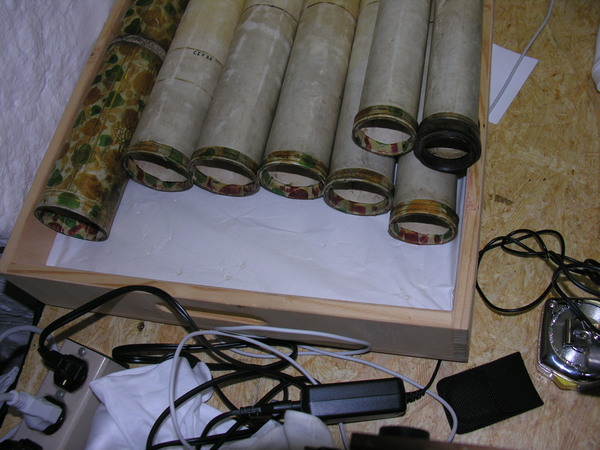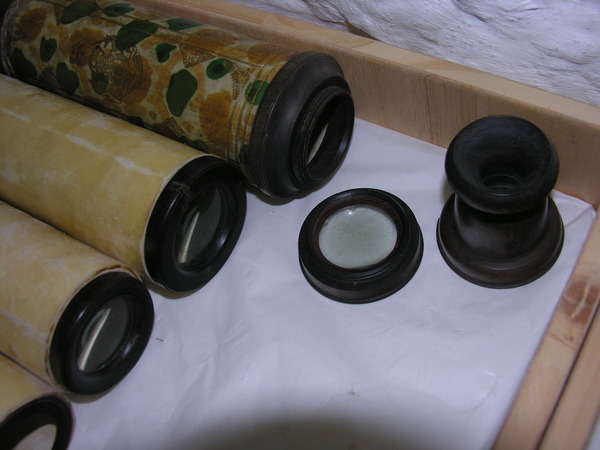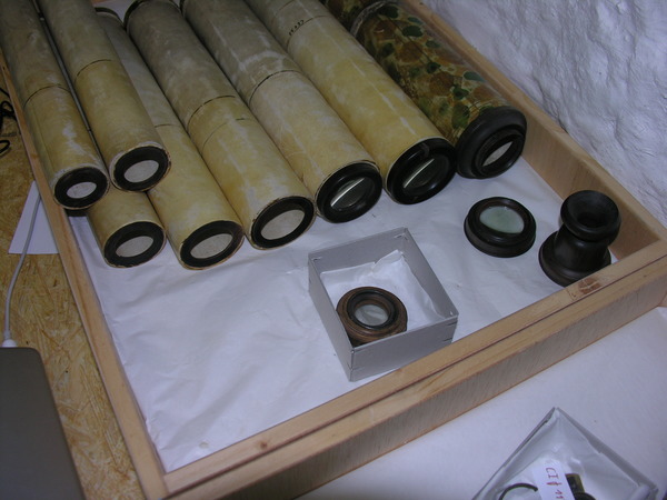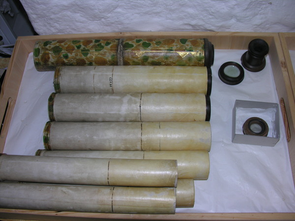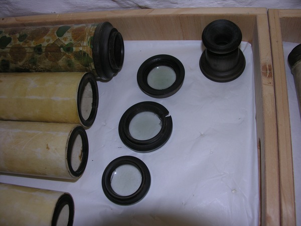 Seven draws. On draw one, someone has drawn on surface the location of the first ocular lens (but it's located at inked extension mark, rather!) All draws have inked extension marks. All draws have aperture, reinforcement rings. Eyepiece lenses, especially 3rd one (next to eye) have greenish tint.
