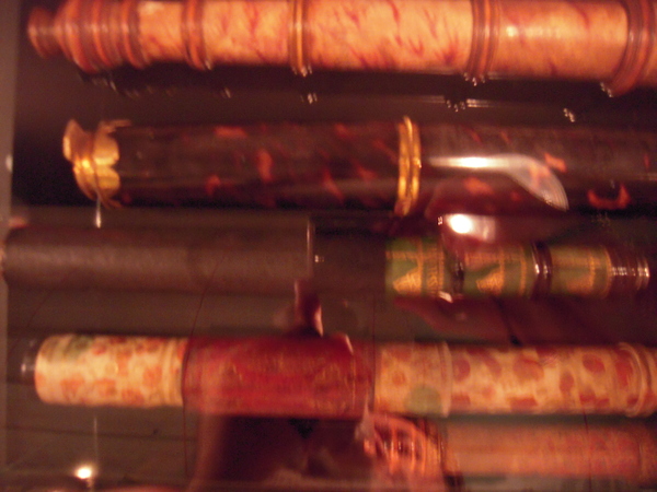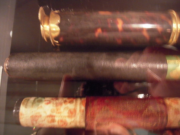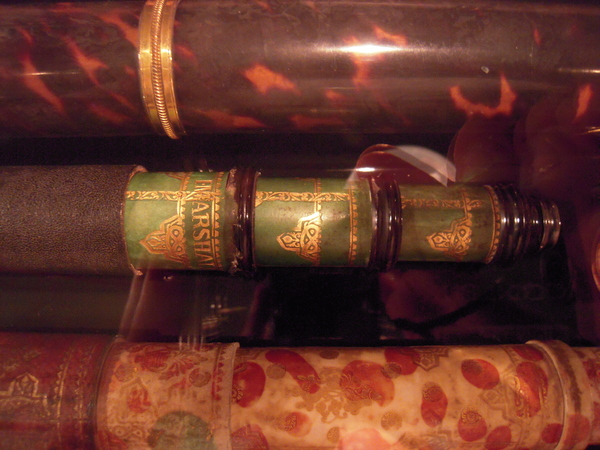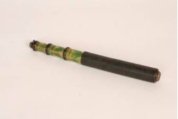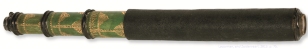 Cardboard, leather, wood construction. John Marshall (?-1723) was one of the most productive telescope makers in London around 1700 and decorated his telescopes with gold embossing.