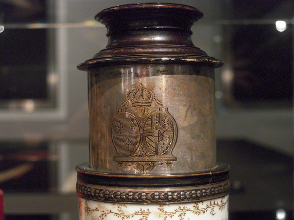 The heraldic coat of arms ‘Bourbon-Von Habsburg Lotharingen’ belonged to the French queen, the Austrian born princess Marie Antoinette (1755-1793). In 1770 she married the French dauphin, who would become King Louis XVI four years later. In 1793 both the king and the queen were beheaded during the French revolution.