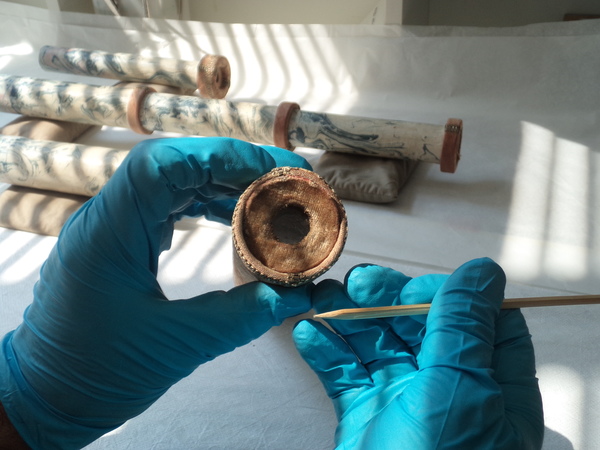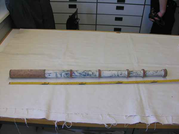 The cabinet that contained this telescope included documentation of the various artisans involved in assembling the Kunstschrank. This documentation makes this instrument the world's oldest surviving, securely-datable telescope (see Hainhofer's inventory of the cabinet).