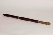 "Cylindrical wooden tube in two parts, which can be screwed together by means of threaded brass bezels. There are two objectives in a rotating mount, enabling two different magnifications.
